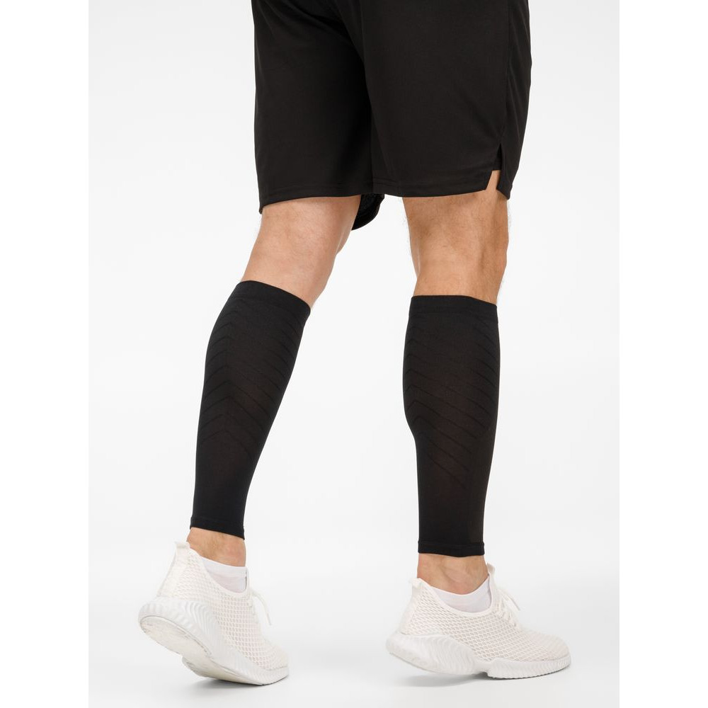 Резинки с улучшенными эргономичными свойствами не пережимают зону под коленом, делая тренировки комфортнее. Эффект компрессии улучшает циркуляцию крови и способствует более активному притоку кислорода к мышцам. В отличие от медицинского компрессионного трикотажа градиент давления гетр Veloxi рассчитан специально на спортивные нагрузки.