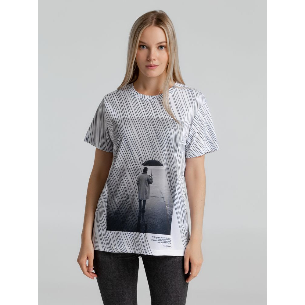 Затяжной ливень заполняет собой все пространство длинными линиями, словно строчки стихов белые страницы. Дождь — это поэзия природы. Футболка с эпиграфом.Футболка унисекс оверсайз. Окантовка горловины из основного полотна.