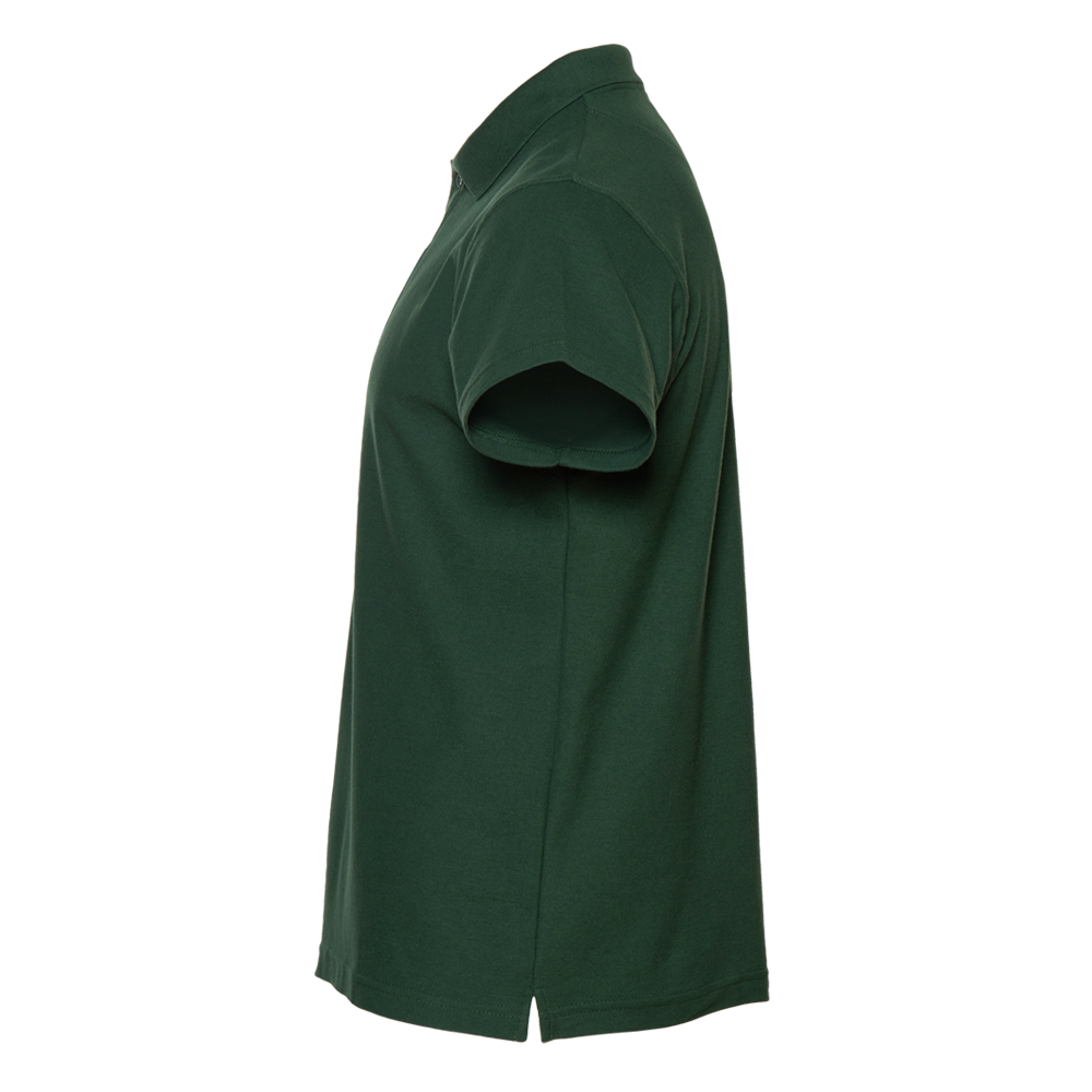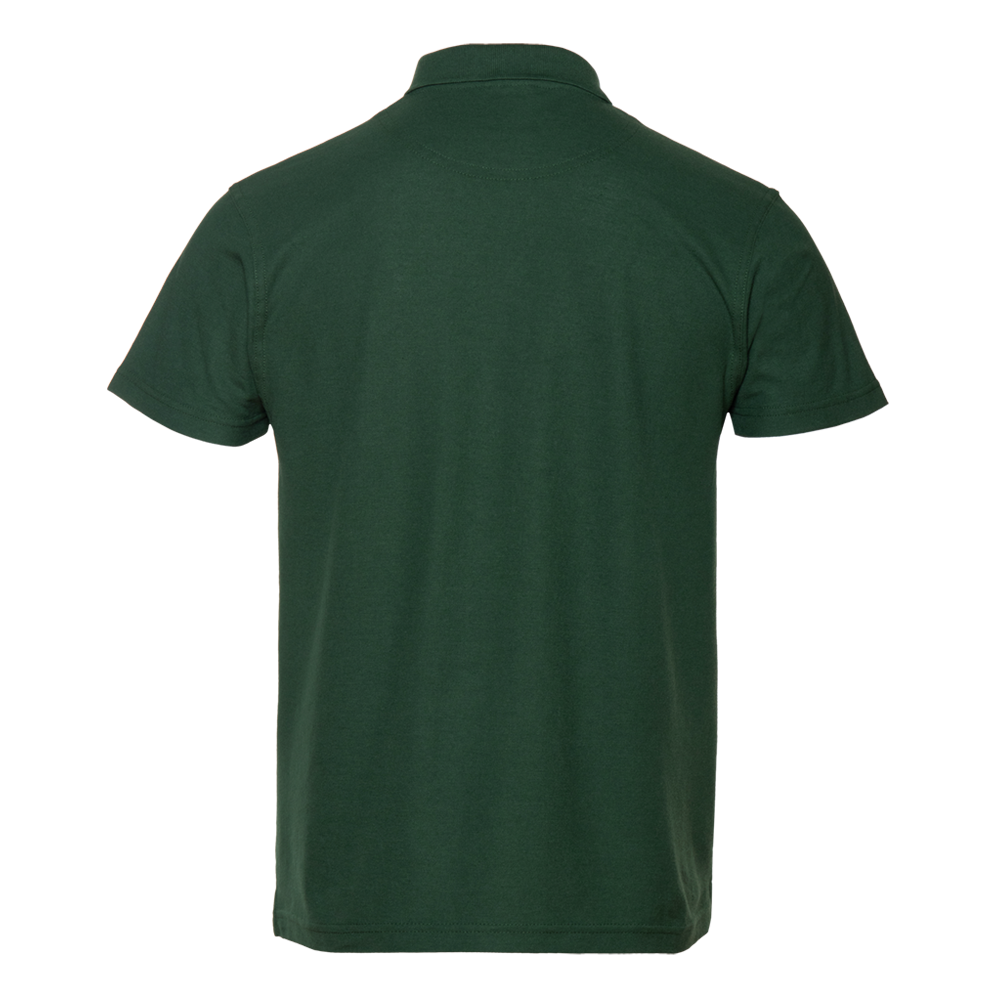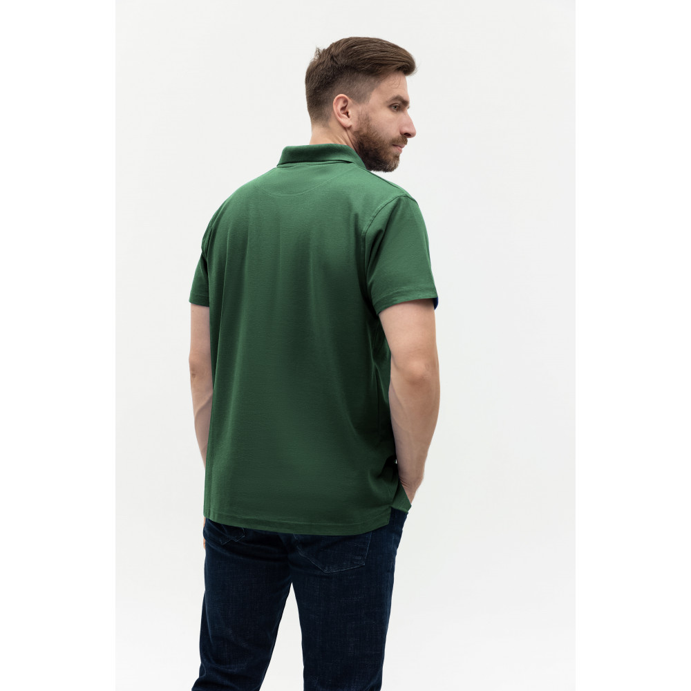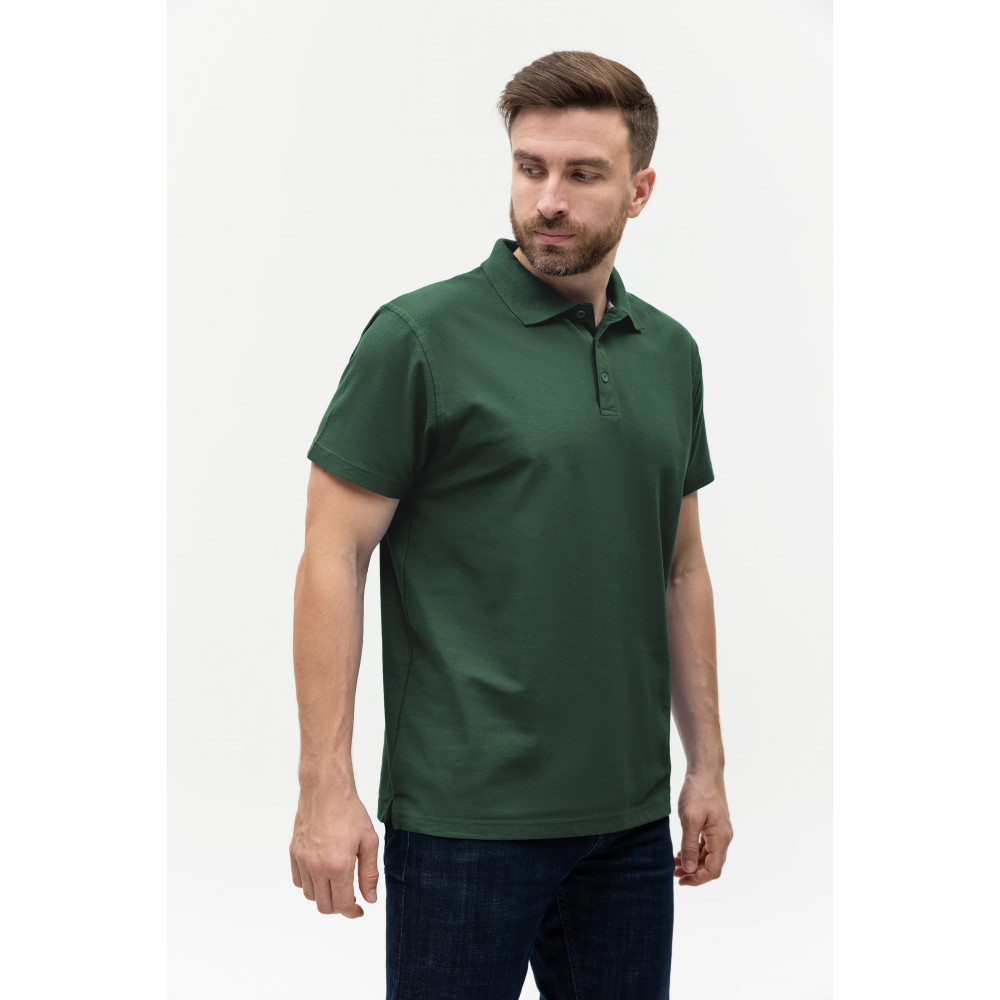 Поло выполнено из фактурной смесового ткани (65% хлопок, 35% полиэстер), благодаря чему изделие хорошо пропускает воздух и практически не мнется.
