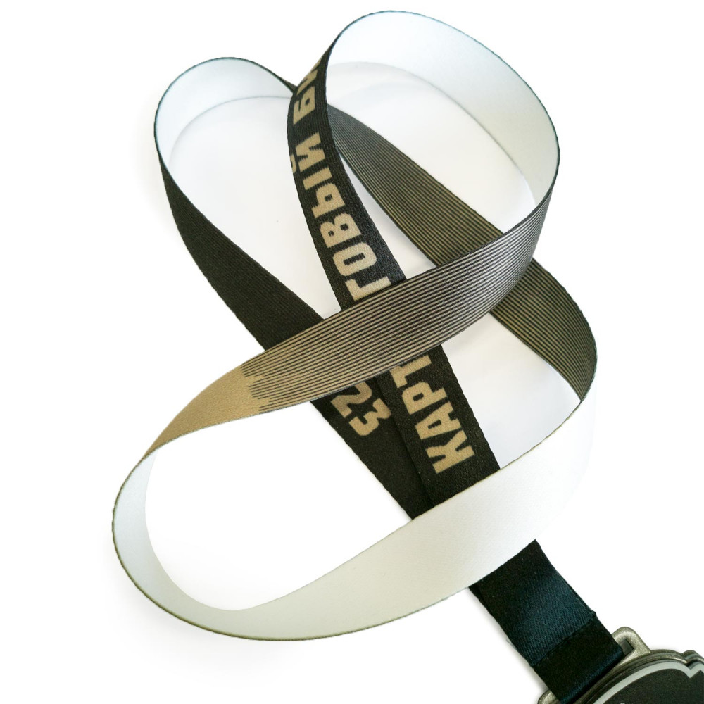 Лента жаккардовая шириной 15 или 20 мм. Плотный, матовый материал, приятный на ощупь. На ленту методом сублимации наносится любое изображение по вашему дизайну. Возможна полная запечатка с одной или двух сторон.