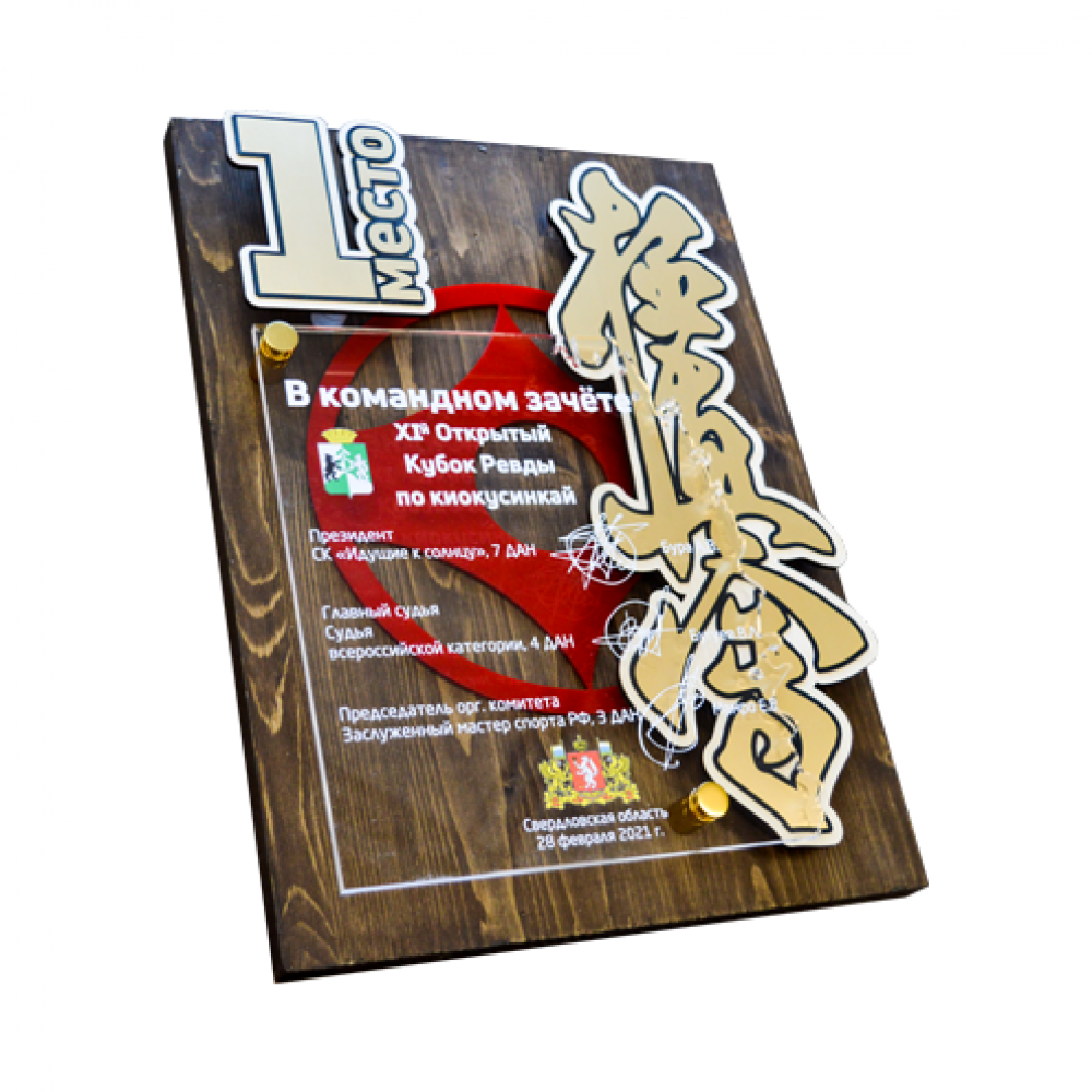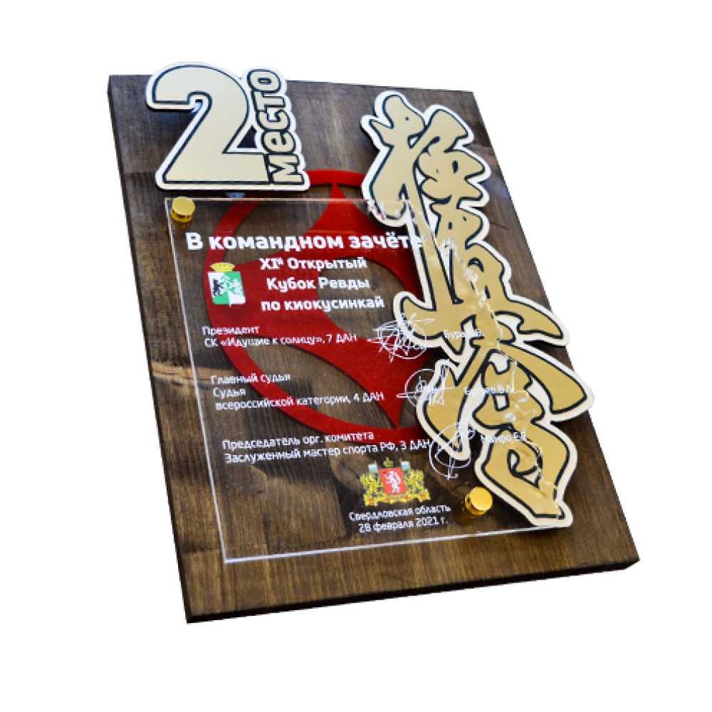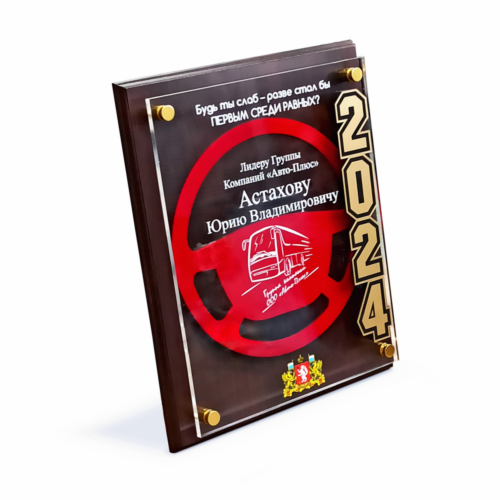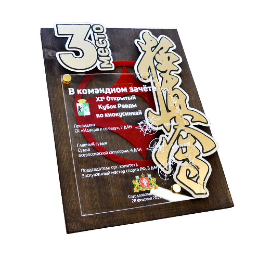 Параметры: Плакетка с декоративными элементами из дерева, пластика и акрила, с УФ-печатью, на дистанционных держателях