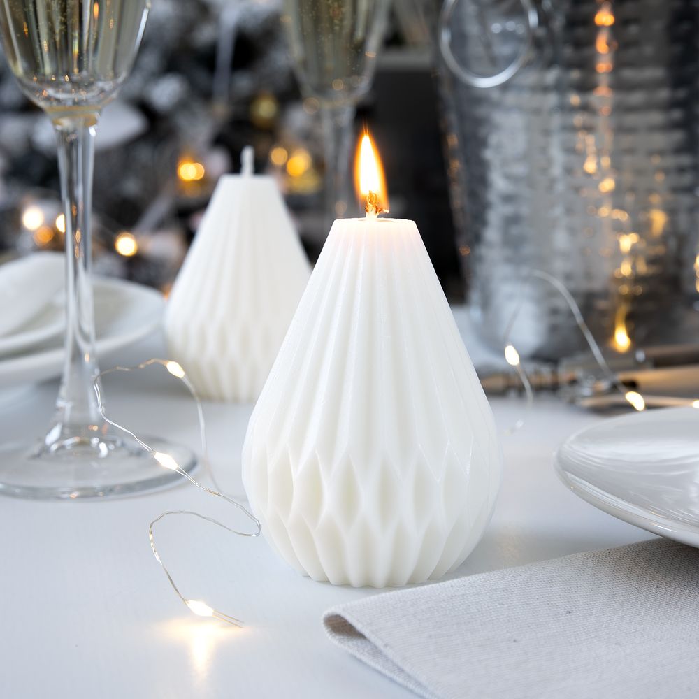 Словно елочная игрушка из бумаги, изящная фигурная свеча Pearfect создает праздничное настроение и притягивает внимание. Объемная форма добавляет ей привлекательности, а лаконичное исполнение делает универсальным элементом новогоднего декора.