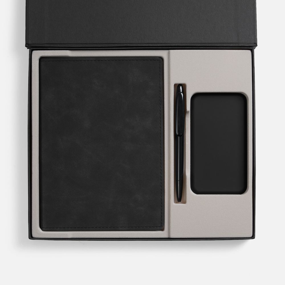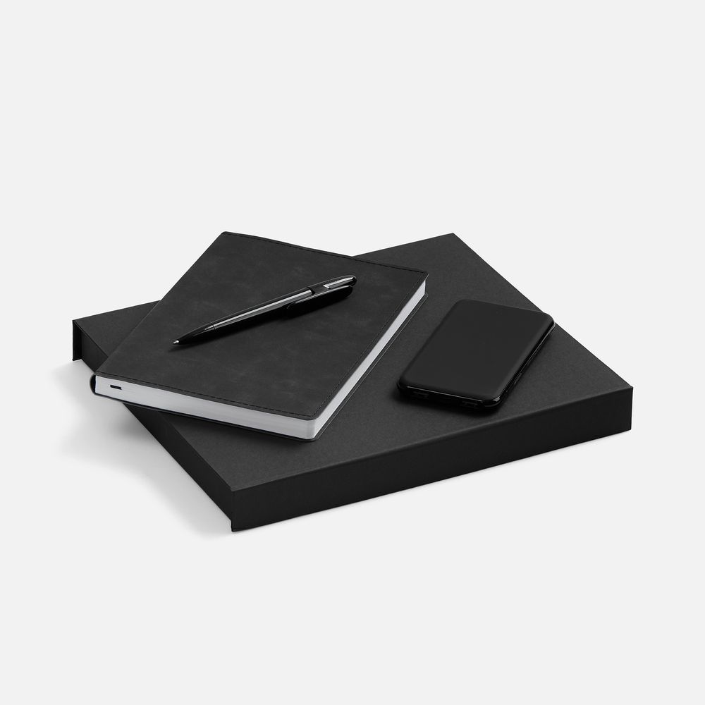 Набор с внешним аккумулятором позволит всегда оставаться на связи, а бессменная офисная классика — ежедневник и ручка — помогут направить энергию в правильное русло!