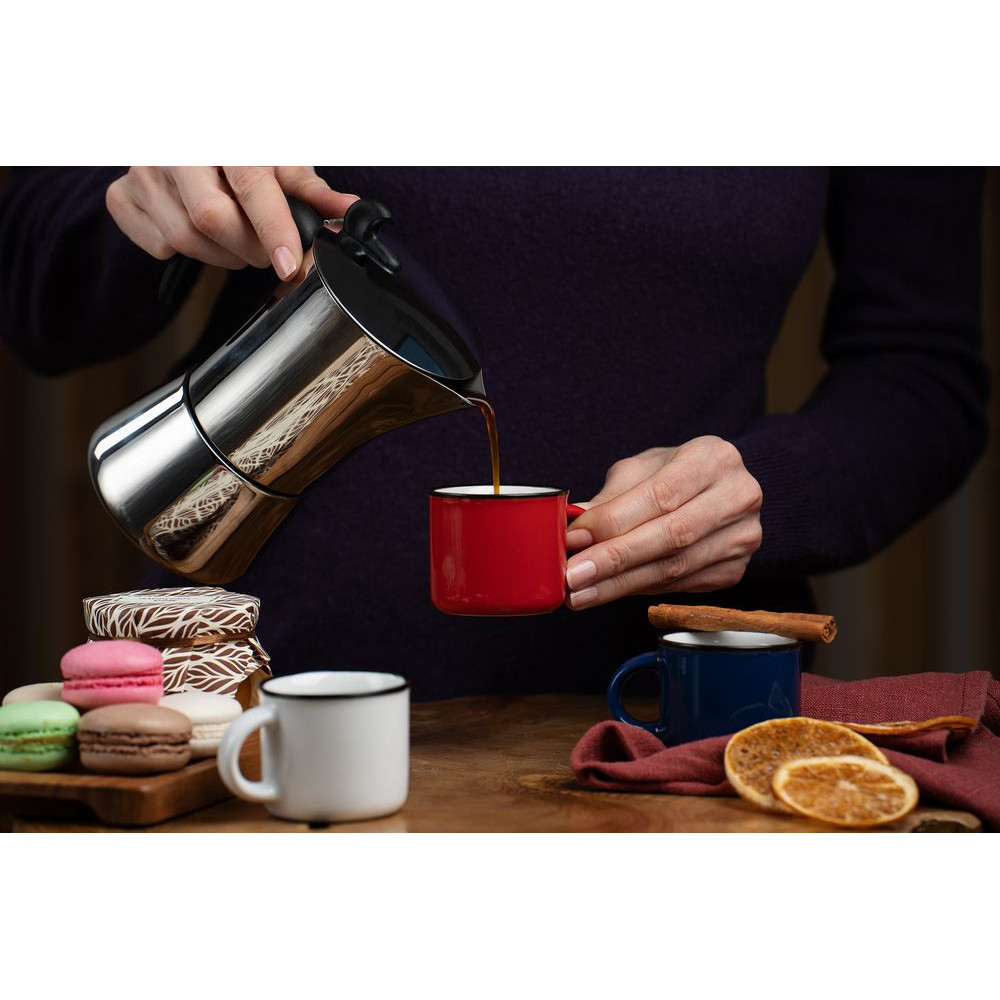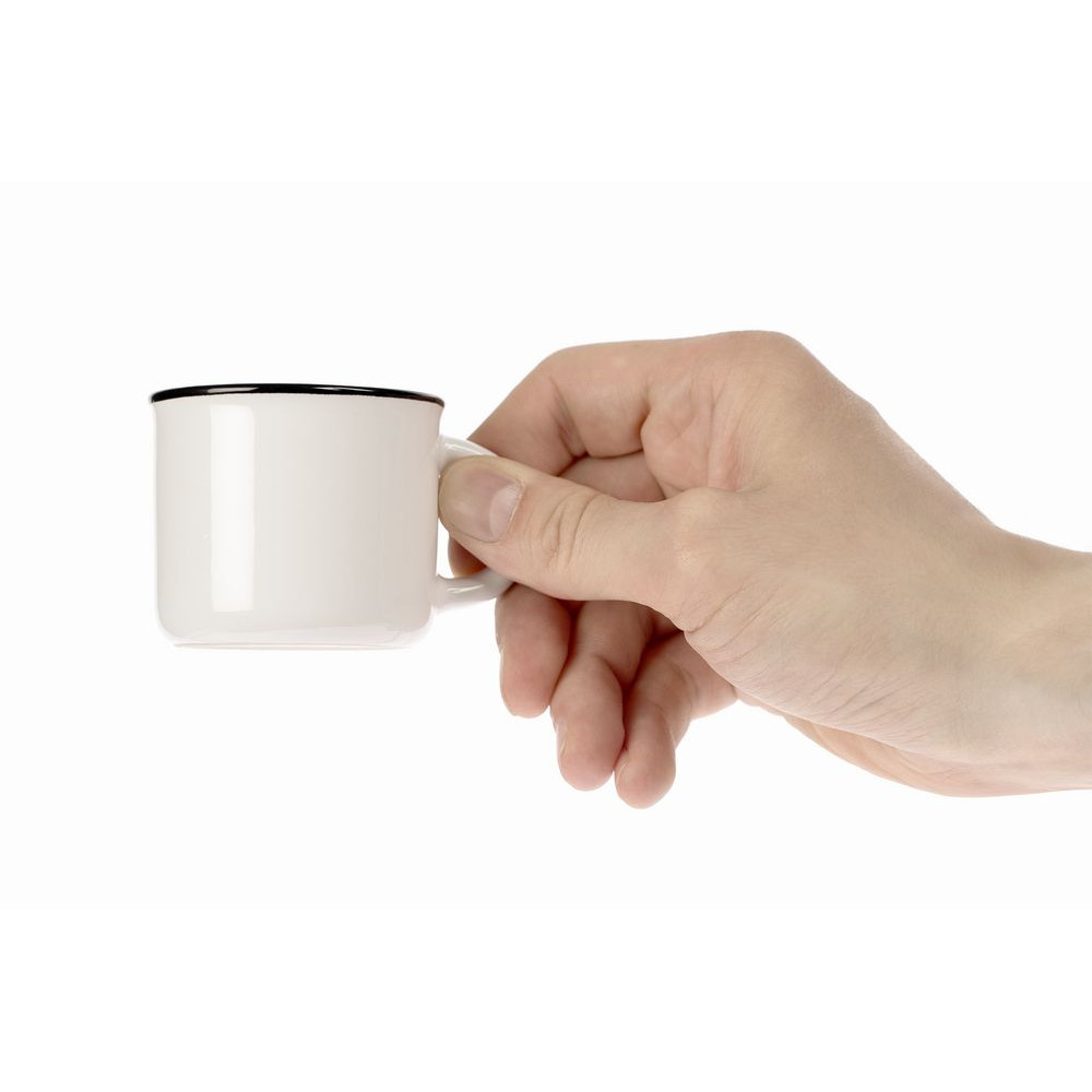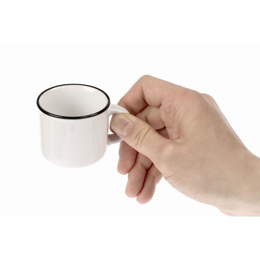 Кружка из фаянса, имитирующая ставшую классикой эмалированную посуду. Идеально подходит для подачи эспрессо.