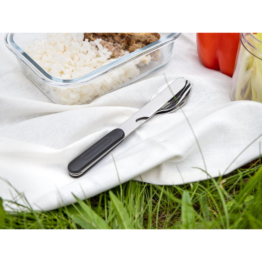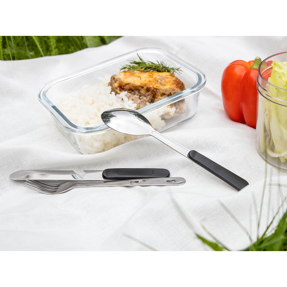 Набор столовых приборов Campsite — неотъемлемая часть любого похода или пикника. С таким компактным набором любое времяпрепровождение на свежем воздухе станет заметно комфортнее: ложка, вилка и нож не занимают много места и легко раскладываются на три отдельных прибора для использования по назначению.