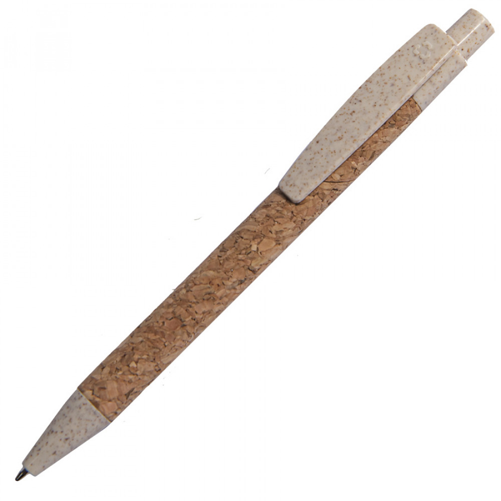 Ручка шариковая N18, бежевый, пробка, пшеничная волокно, ABS пластик, цвет чернил синий