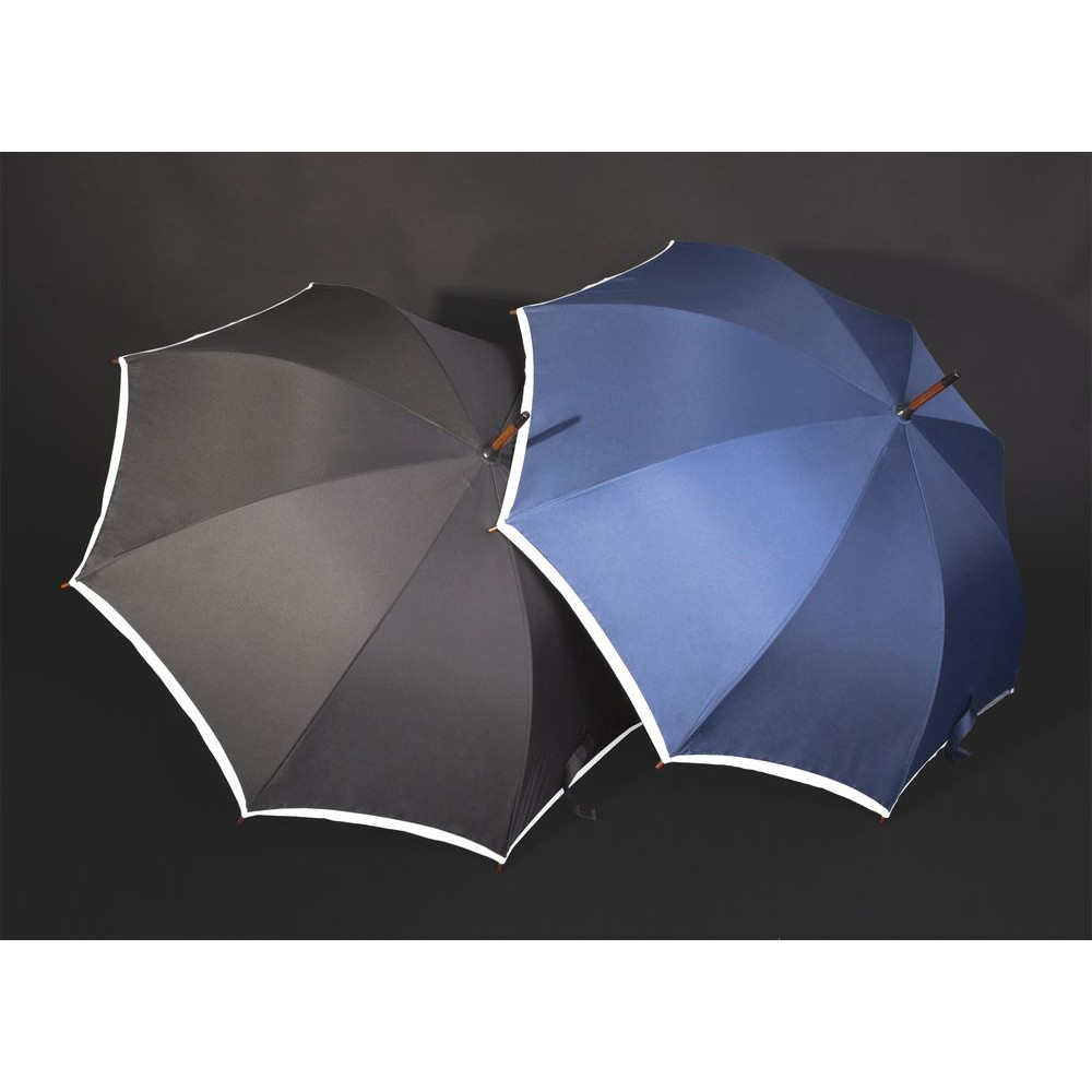 Зонт со светоотражающей полосой обеспечит вас дополнительной защитой в темное время суток, повышая видимость для водителей и пешеходов благодаря ярким отражающим элементам.